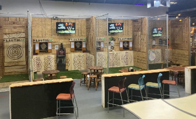 These options feature sport bay #3, our nook with one axe throwing lane and 2 dart targets and reserved seating.