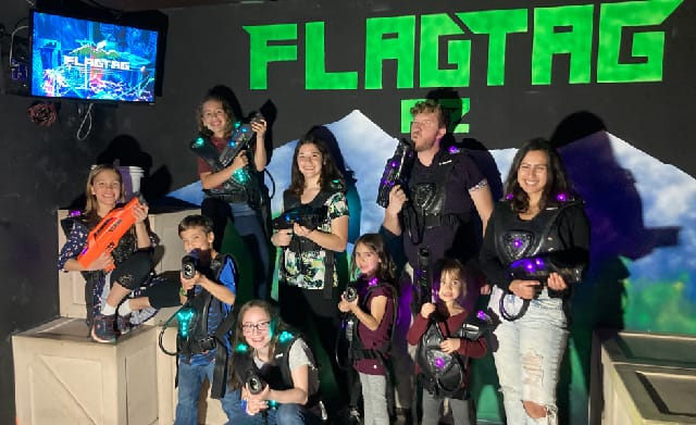 Just like booking our regular laser tag, this is not a package, so you can customize how you many games of laser tag you would like. Grab a table and feel free to add on pizzas. You can purchase arcade cards at the kiosk inside FlagTagAZ. Unlimited Laser Tag: $29.99 per person - 4 games: $25.99 per person - 3 games: $23.99 per person - 2 games: $16.99 per person - 1 game: $9.99 per person