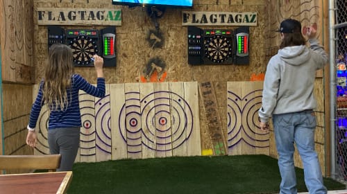 Perfect for a group of about 30+ people. With 6 dart targets, and one axe lane, everyone can have a chance to try axe throwing and enjoy throwing darts. $160 per hour