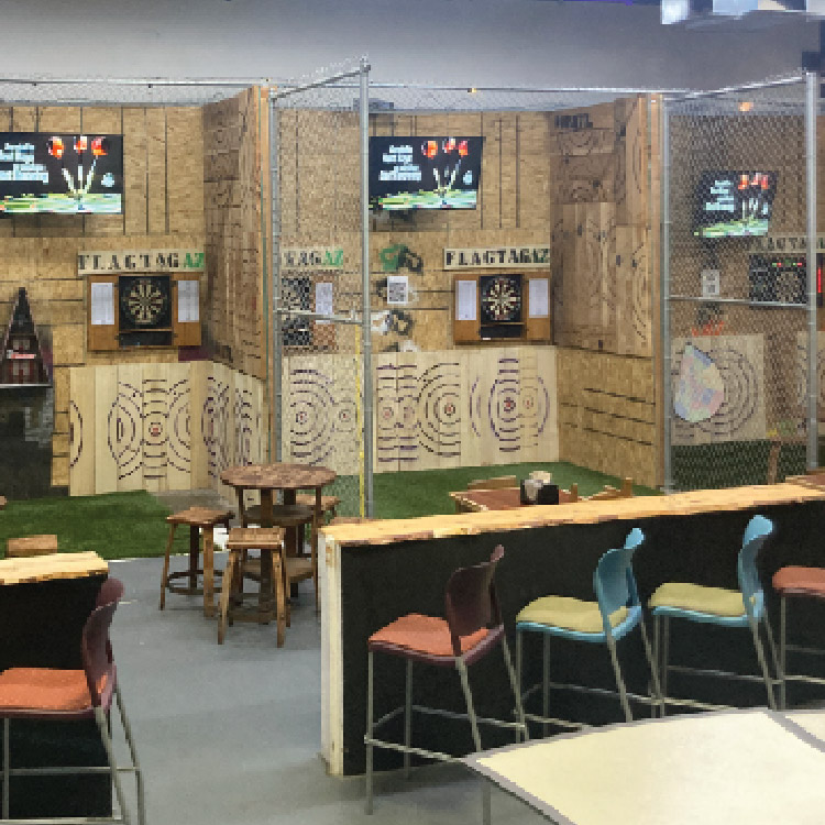 Throw axes, knives, darts or throwing stars at our digitally projected targets and play one of our many games.
