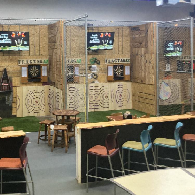 Come and have fun in laser tag, playing arcades, or throwing things while enjoying our selection of food and drink.